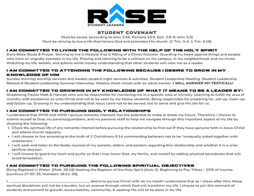RISE Student Leadership exists to raise up the next generation of leaders who love Jesus, serve faithfully, and step boldly into their calling. No matter your age, we believe God can call you and prepare you to lead, even at a young age. This is more than a position; it’s a lifestyle of influence, growth, and impact.