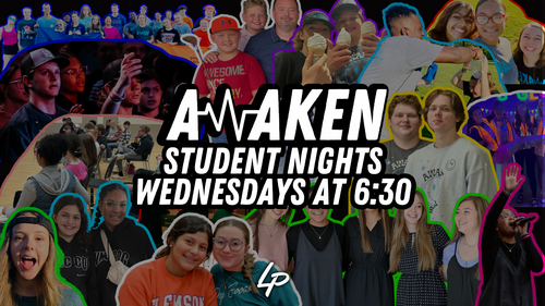 Awaken Students meet every Wednesday at 6:30pm in their own space in the gym where they hear relevant and challenging messages from the Bible, engage in worship, hang out with friends and meet new people. They do regular social outings, have opportunity to attend summer camps, go to youth conferences, do community outreach, and so much more. This is a thriving part of the ministry of Lifepoint Church and it's a great place for your teenagers.